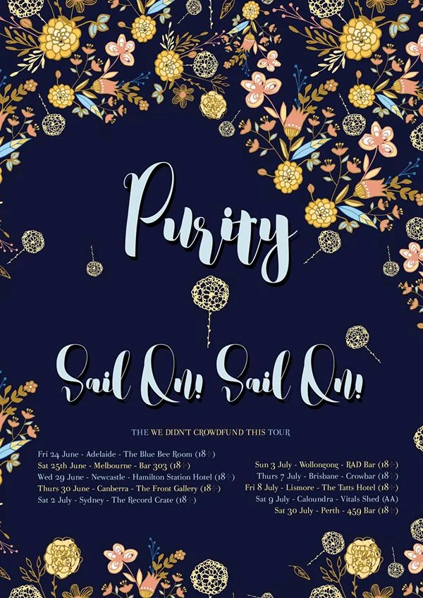 Purity. are a 5 piece Melodic Emo, Post-Rock influenced Hardcore band from the Capital Territory of Australia, Canberra. Having 4 releases in their 3 & a half year time as a group Purity are touring Australia again for the 4th time! Having toured Australia & New Zealand before with bands Punchdagger, Silver Lining, Pasha Bulka, Fresh Nelson, Barracks, Guard Your Hearts & Fire For Glory this tour is in celebration of their 4th record 'Old Saw' released on the 20th of April this year through BrokenJar on Youtube & on the band's personal Bandcamp page linked here (purityhardcore.bandcamp.com)