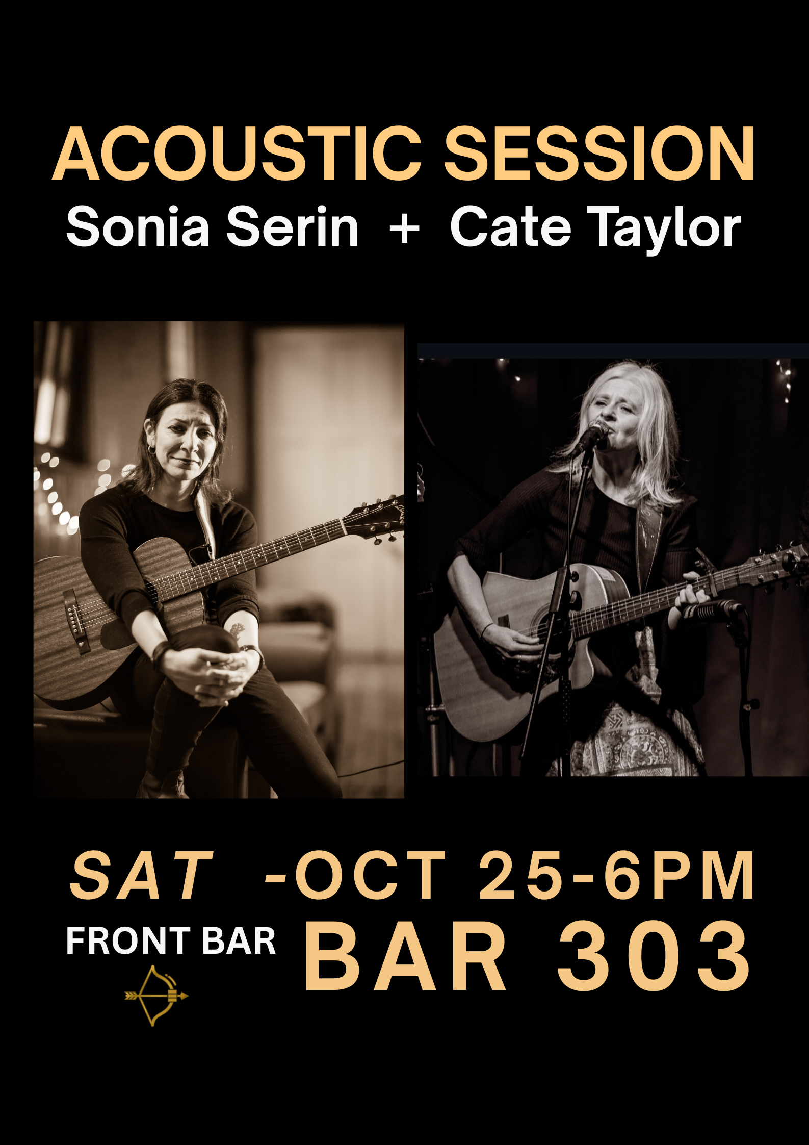 An evening acoustic session with Sonia Serin and Cate Taylor.