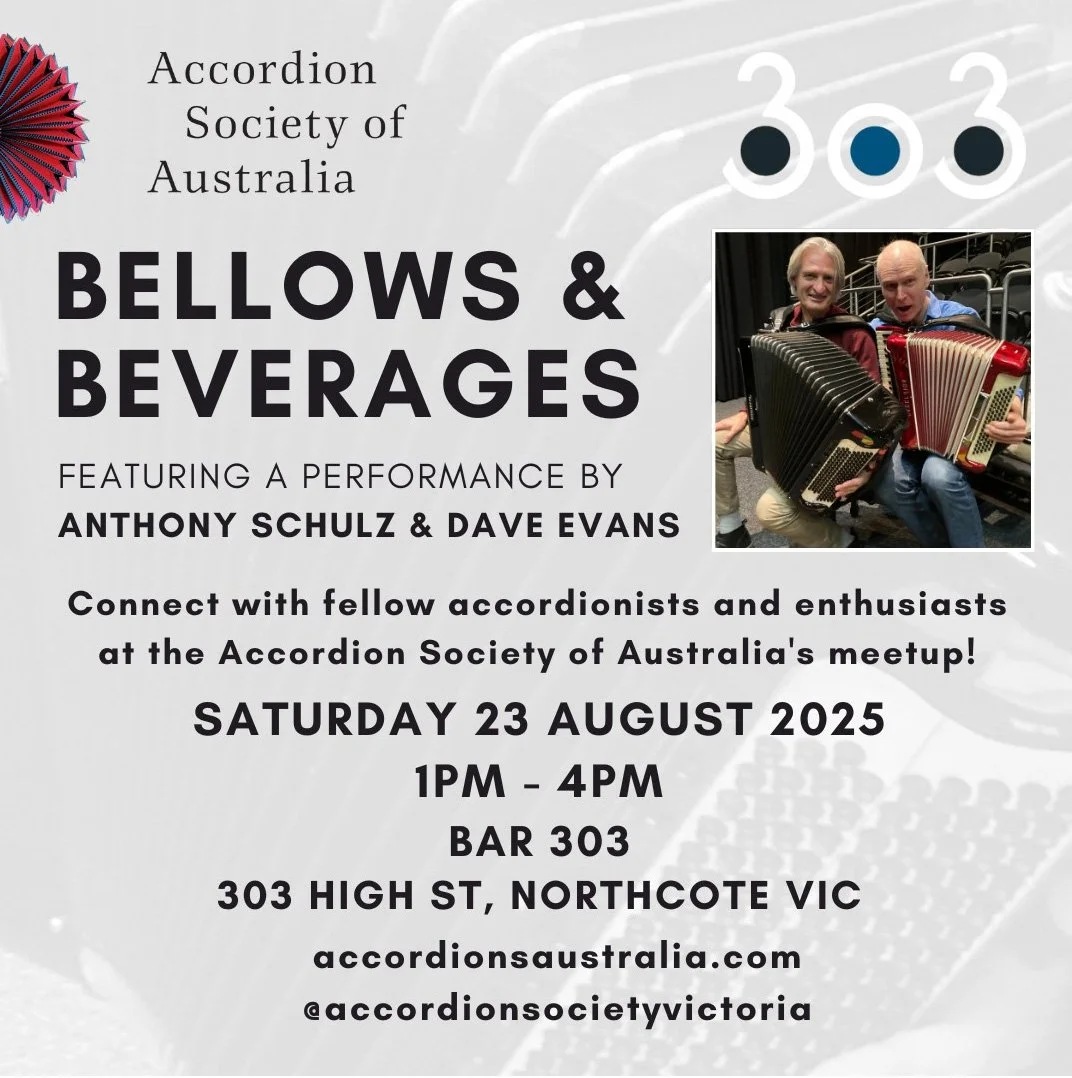 Connect with fellow accordionists and enthusiasts at the Accordion Society of Australia's meetup! Don't miss this opportunity to connect with like-minded individuals and experience the accordion in a warm, friendly atmosphere over food and drink. All skill levels welcome! Whether you're an accomplished player, just starting out, or simply adore the mesmerizing sounds of the accordion, this event is perfect for you!