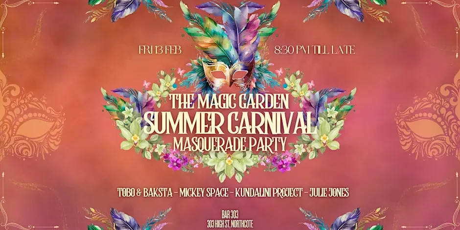 The Magic Garden returns with a unique Summer Carnival celebration! We’re excited to welcome you to a vibrant Masquerade Party at one of Northcote’s coolest venues, Bar 303.